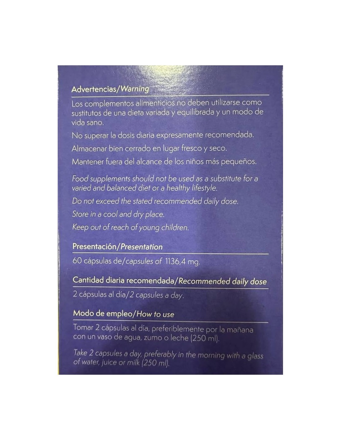 Tomar 2 cápsulas al día, preferiblemente por la mañana con un vaso de agua, zumo o leche. Se recomienda el uso de Seidiferty durante al menos 4 meses.