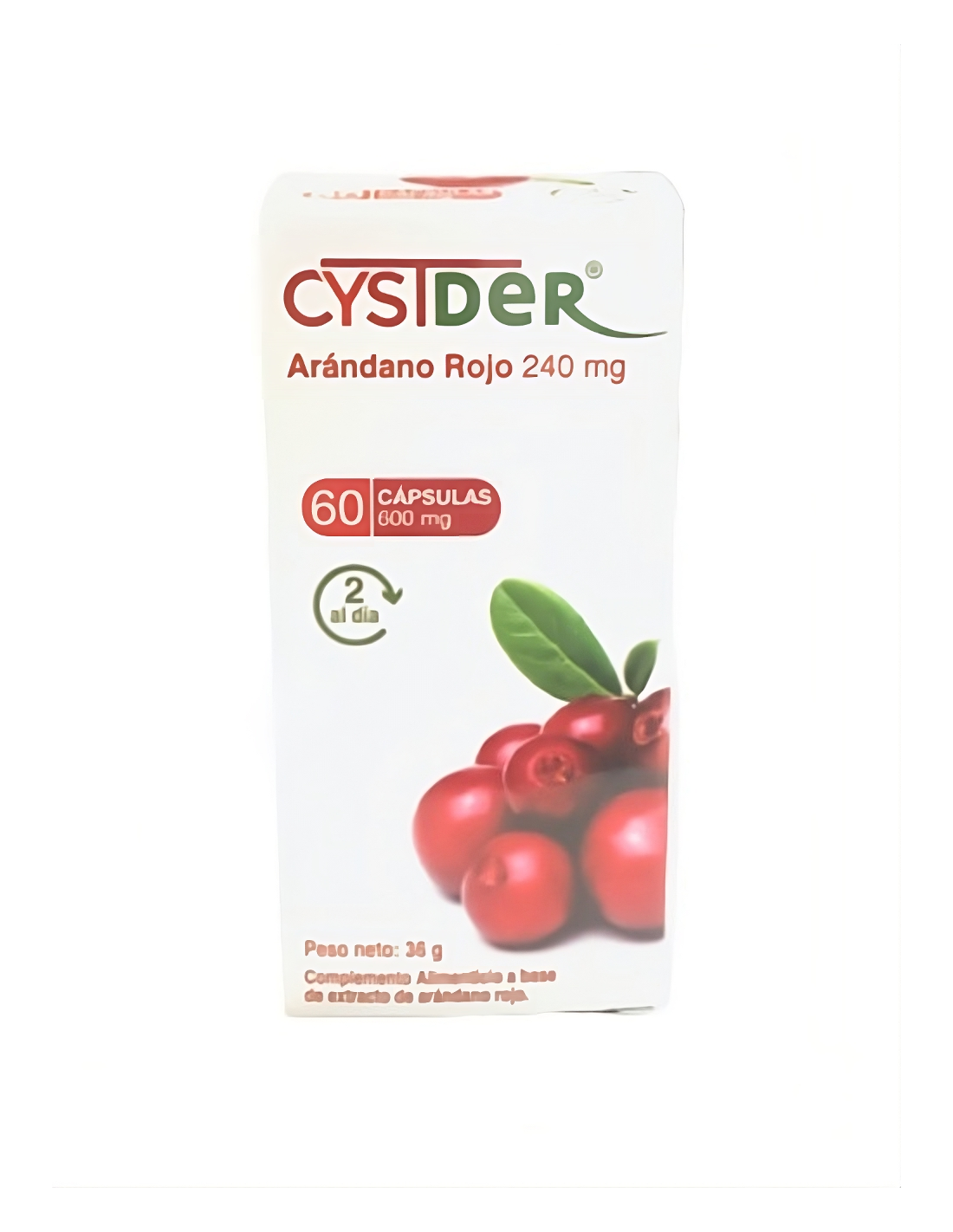 Cystder arándano rojo es un complemento alimenticio que está indicado para prevenir y ayudar a eliminar la cistitis. Cystder arándano rojo ayudar a aliviar los síntomas de la cistitis, como la micción frecuente y dolorosa, la urgencia urinaria y la sensación de ardor al orinar.