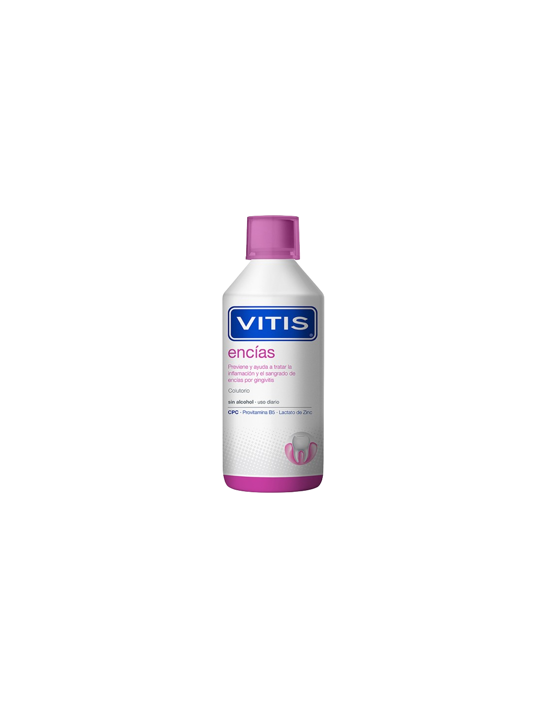 Vitis encias es un colutorio está formulado especialmente para prevenir y ayudar a tratar la inflamación y el sangrado de encías. Inhibe la formación de placa bacteriana (biofilm oral) y reduce su acumulación, controlando así la aparición o el desarrollo de la gingivitis.