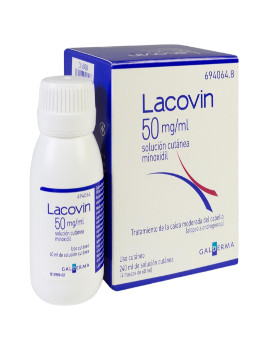 Lacovin es una solución para uso sobre la piel del cuero cabelludo que estimula el crecimiento del cabello en individuos con alopecia androgénica (tipo más común de calvicie) cuando se aplica tópicamente. Este medicamento está indicado para el tratamiento de la caída moderada del cabello de origen androgénico, en adultos.