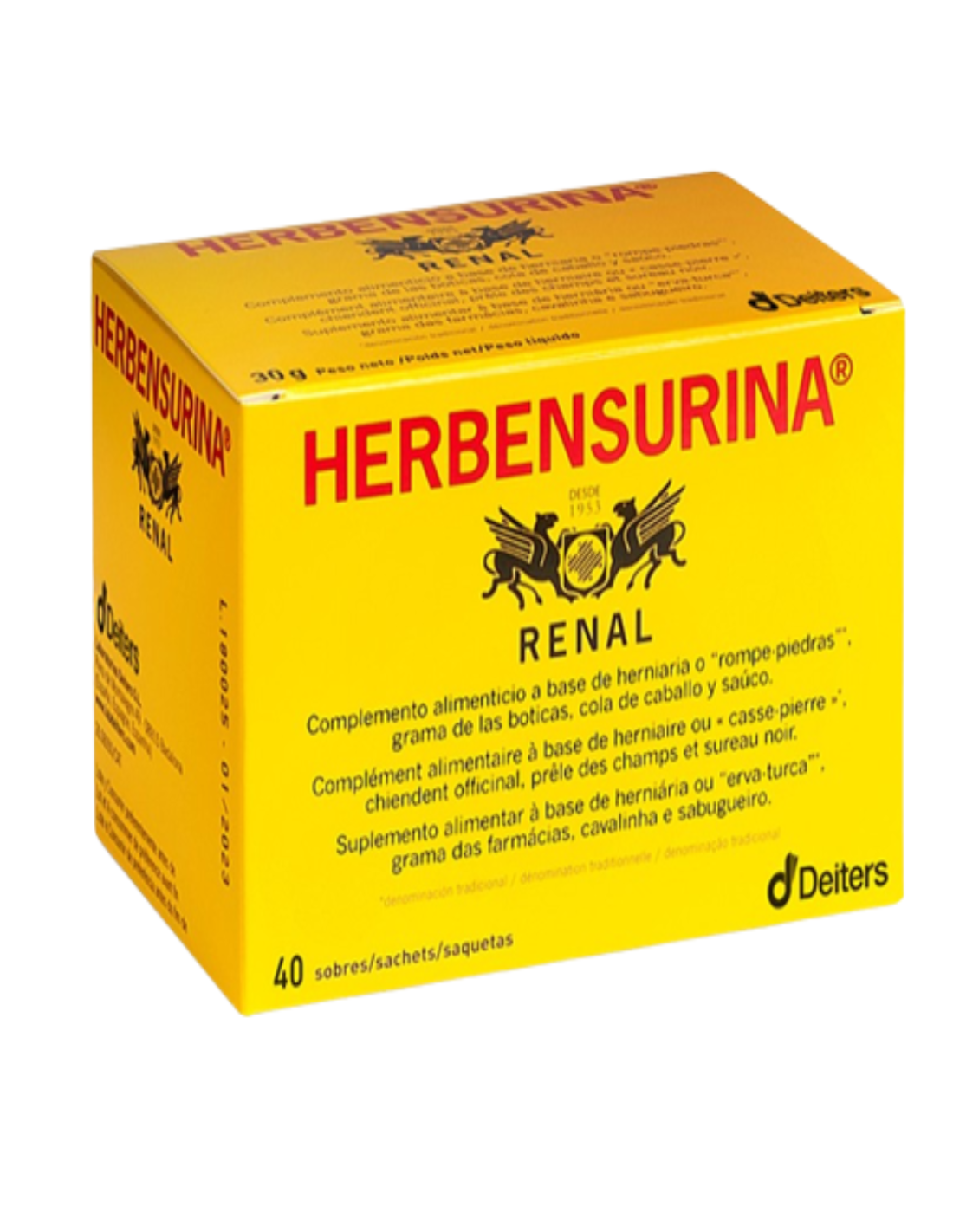Herbensurina es una fórmula completa que ayuda a mantener los riñones limpios. Eficaz por su formulación a base de la planta herniaria complementada con plantas diuréticas. Mezcla de plantas en filtro. 100% natural. La infusión ayuda a asegurar un aporte diario de agua.