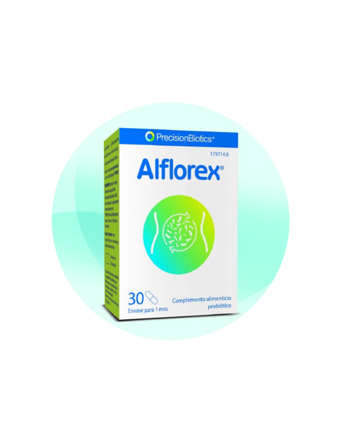 Alflorex es un complemento alimenticio con la cepa 35624 de Bifidobacterium longum, una cepa probiótica exclusiva y con características únicas, naturalmente abundante en el intestino humano. Contribuye a mantener el equilibrio de la microbiota, preservando la función fisiológica de barrera intestinal y ayudando a reducir los síntomas gastrointestinales asociados al colon irritable.