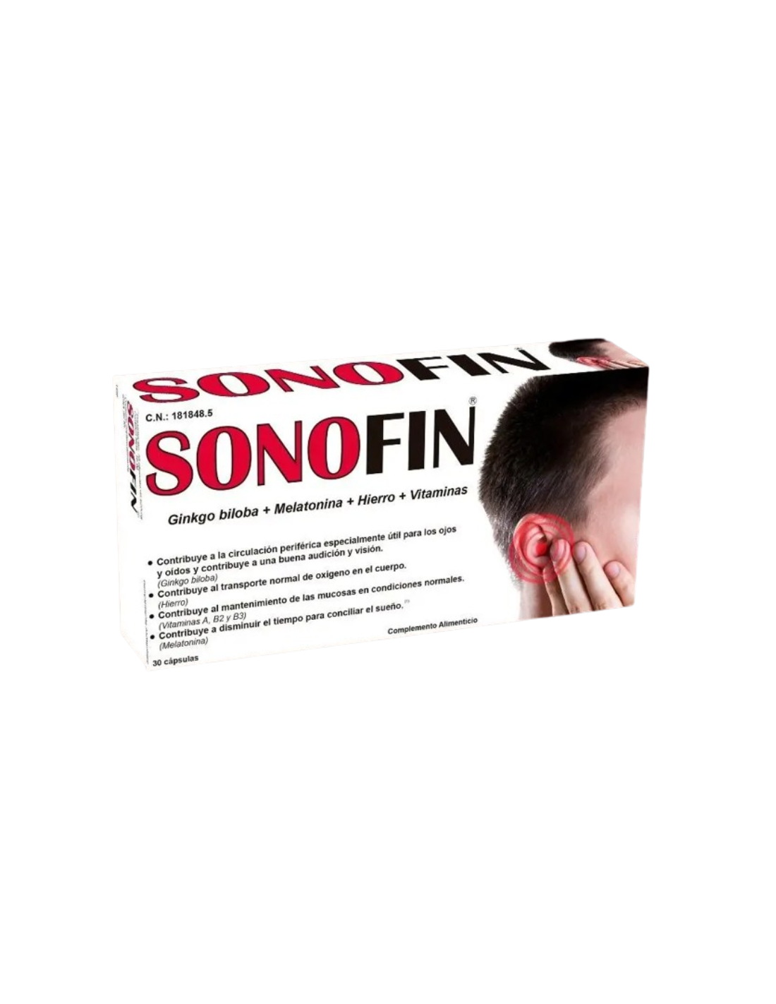 Sonofin es un complemento alimenticio que te ayuda a dormir bien, sin molestos pitidos. Consigue una audición saludable, sin ruidos, zumbidos o silbidos, gracias al Ginkgo biloba que mejora la circulación cerebral y Melatonina que permite una buena inducción al sueño.