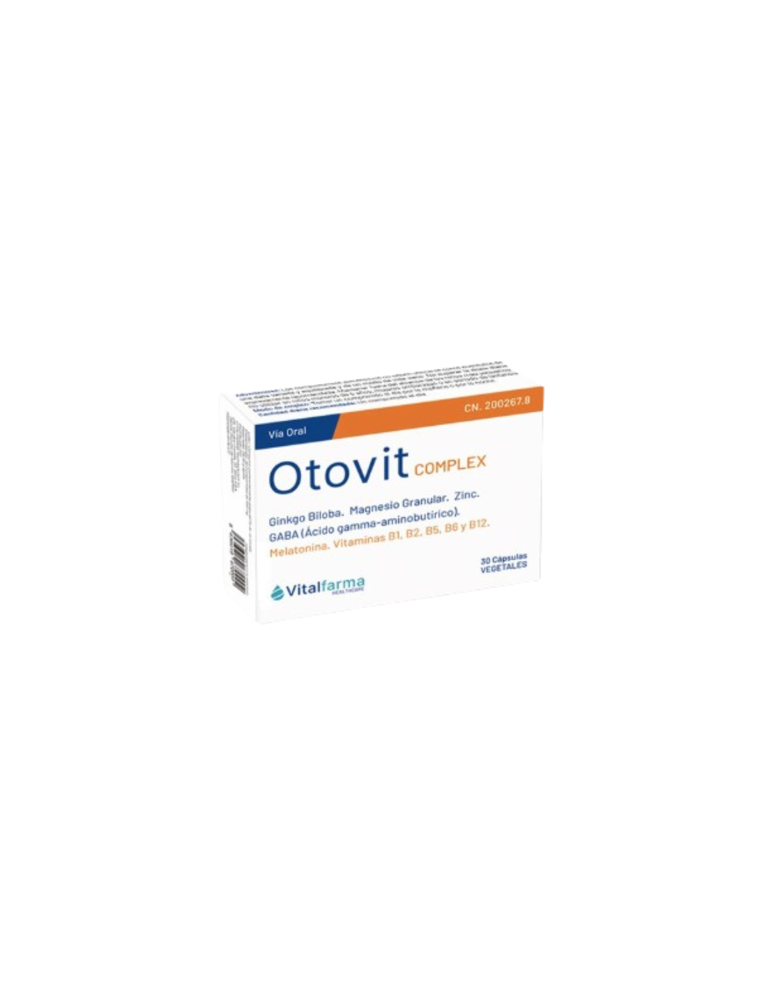 Otovit complex es un complemento alimenticio a base de ginkgo biloba, magnesio, citrato de zinc, 5-hidroxitriptófano, melatonina y vitaminas del grupo B que contribuye al correcto funcionamiento del oído.