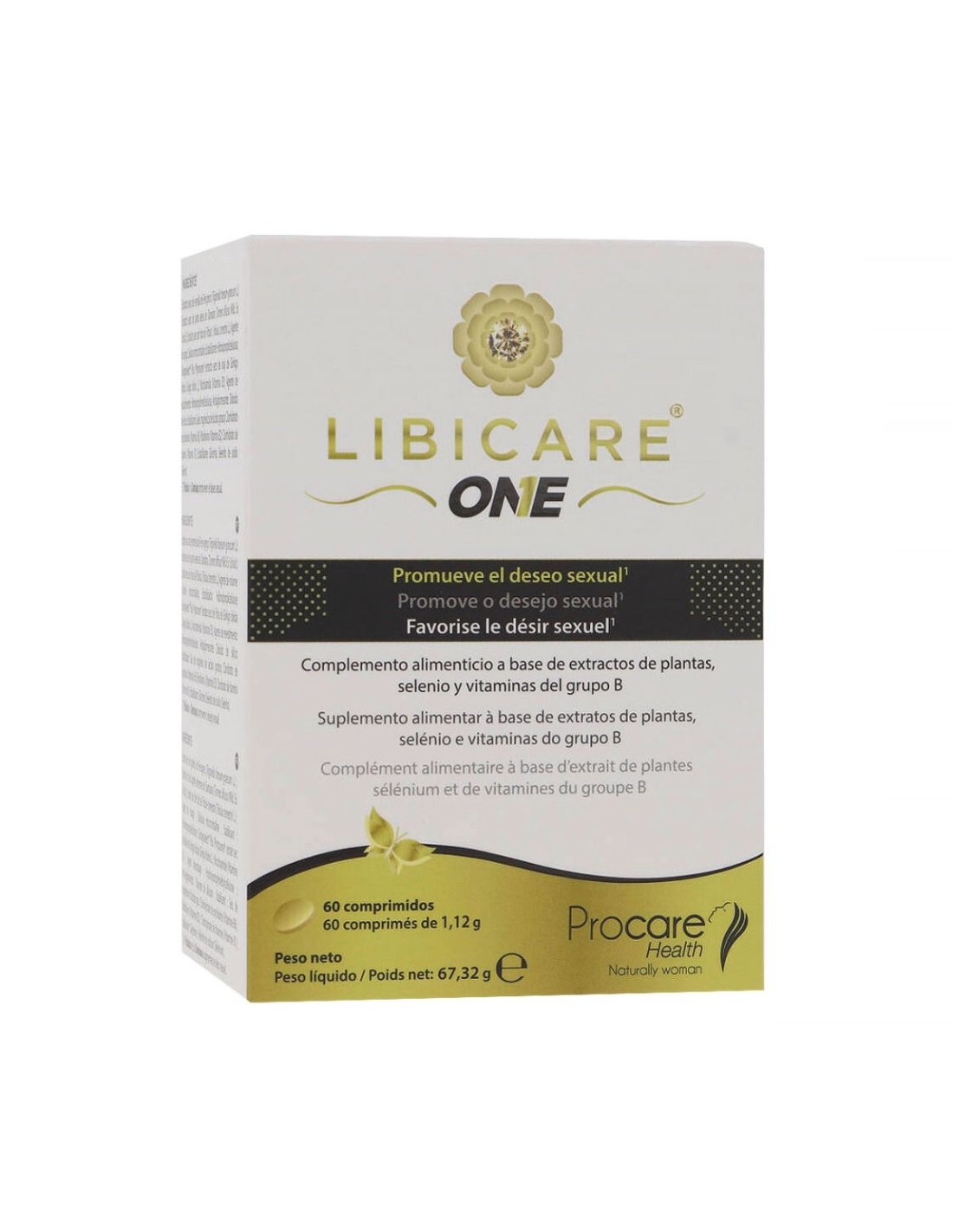Libicare One es un complemento alimenticio a base de extractos vegetales, selenio y vitaminas del conglomerado B, que presenta efectos favorables en la optimización de la actividad sexual en mujeres con escaso apetito.
