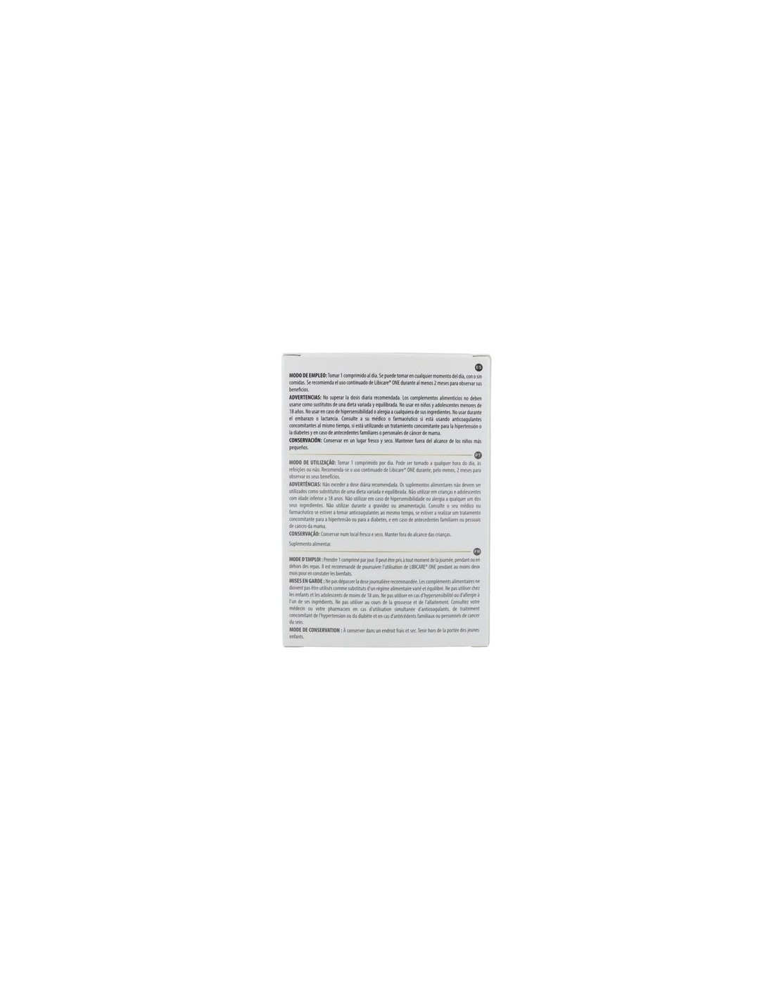 Tomar 1 comprimido al día. Se recomienda utilizar libicare one al menos durante 2 meses.